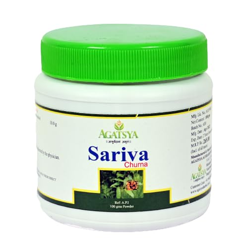 Sariva also known as Anantamula is an excellent remedy for a wide range of blood and skin disorders.Sariva is a natural detoxifier and very effective blood purifier. It helps in managing various disorders of female reproductive system.Botanical name: Hemidesmus indicusFamily: AsclepidaceaeUseful part: RootRasa: MadhuraGuna: guru, SnigdhaVeerya: SheetaVipaka: MadhuraBalances Vata, Pitta and Kapha doshas.Agatsya Sariva Churna benefits:· Highly beneficial in skin diseases· Aids digestion· Treats fever· Used in the management of Diabetes and Urinary tract disorders· Improves sperm quality and quantity· Treats diarrhoea , dysentery· Supports the respiratory system· Manages toxic conditions· Treats Menorrhagia.