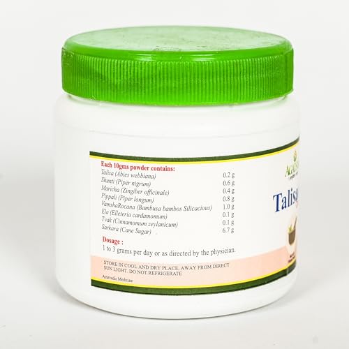 Agatsya Talisadi Churna is traditional formula that supports proper function of the lungs and healthy respiration and aids proper digestion.It is helpful in the treatment of cold, cough, asthma, fever, anorexia, vomiting, diarrhoea, bloating, anaemia and spleen disorders. Ingredients: · Talisa · Maricha · Shunti · Pippali · Vamshalochana · Ela · Twak · Sharkara