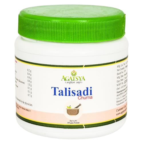 Agatsya Talisadi Churna is traditional formula that supports proper function of the lungs and healthy respiration and aids proper digestion.It is helpful in the treatment of cold, cough, asthma, fever, anorexia, vomiting, diarrhoea, bloating, anaemia and spleen disorders. Ingredients: · Talisa · Maricha · Shunti · Pippali · Vamshalochana · Ela · Twak · Sharkara