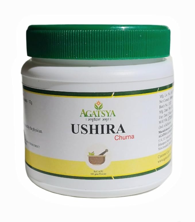 Agatsya Ushira Churna is fine Vetiver root powder. It is an excellent body coolant. It helps to pacify Pitta dosha in the body. It is used in the management of fever, burning sensation, dysuria.