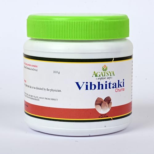 Vibhitaki is extensively used in ancient medicine. Literally it means a fruit that takes away the fear of disease. Also called as Baheda, Bibhitaki, it is one among the Triphala. Acharya Charaka has classified it among Jwarahara and Kasahara ie group of herbs that are used in the treatment of fever, cold and cough.Botanical name: Terminalia bellerica Roxb.Family: CombretaceaeThe dried fruit pericarp is used to make Vibhitaki Churna.Rasa: KashayaGuna: Ruksha, LaghuVeerya: UshnaVipaka: MadhuraBalances Kapha and Pitta doshas.Agatsya Vibhitaki Churna Benefits:· Supports proper functioning of the lungs,treats cough,cold, congestion and fever.· Promotes healthy vision· Good for hair growth· Relieves vomiting and worm infestation.· Has a laxative action, hence treats constipation.