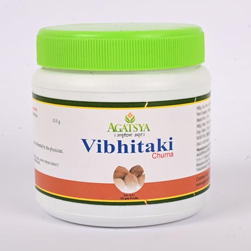 Vibhitaki is extensively used in ancient medicine. Literally it means a fruit that takes away the fear of disease. Also called as Baheda, Bibhitaki, it is one among the Triphala. Acharya Charaka has classified it among Jwarahara and Kasahara ie group of herbs that are used in the treatment of fever, cold and cough.Botanical name: Terminalia bellerica Roxb.Family: CombretaceaeThe dried fruit pericarp is used to make Vibhitaki Churna.Rasa: KashayaGuna: Ruksha, LaghuVeerya: UshnaVipaka: MadhuraBalances Kapha and Pitta doshas.Agatsya Vibhitaki Churna Benefits:· Supports proper functioning of the lungs,treats cough,cold, congestion and fever.· Promotes healthy vision· Good for hair growth· Relieves vomiting and worm infestation.· Has a laxative action, hence treats constipation.