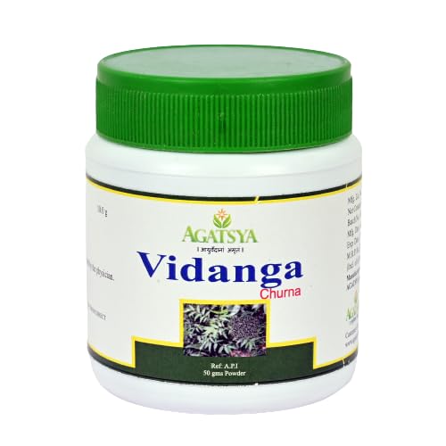 Acharya Charaka has delineated Vidanga as the best among the Krimighna dravya ie herbs that destructs the worms. It also acts as an Anti oxidant , Blood purifier and Rejuvenator.It is called as False black pepper as its external appearance mimics pepper.Botanical name: Embelia ribes Burm. F.Family: MyrsinaceaePart used: FruitRasa: Katu,KashayaGuna: Laghu, Ruksha, TiksnaVeerya: UshnaVipaka: KatuBalances Kapha and Vata doshas.Agatsya Vidanga Churna benefits:· Is the best herb to treat worm infestation ; bacterial,fungal infestation· Treats impaired digestion· Useful in skin disorders· Useful in the management of Diabetes, Urinary disorders· Improves appetite,relieves abdominal pain and bloating,distension· Relieves Constipation.