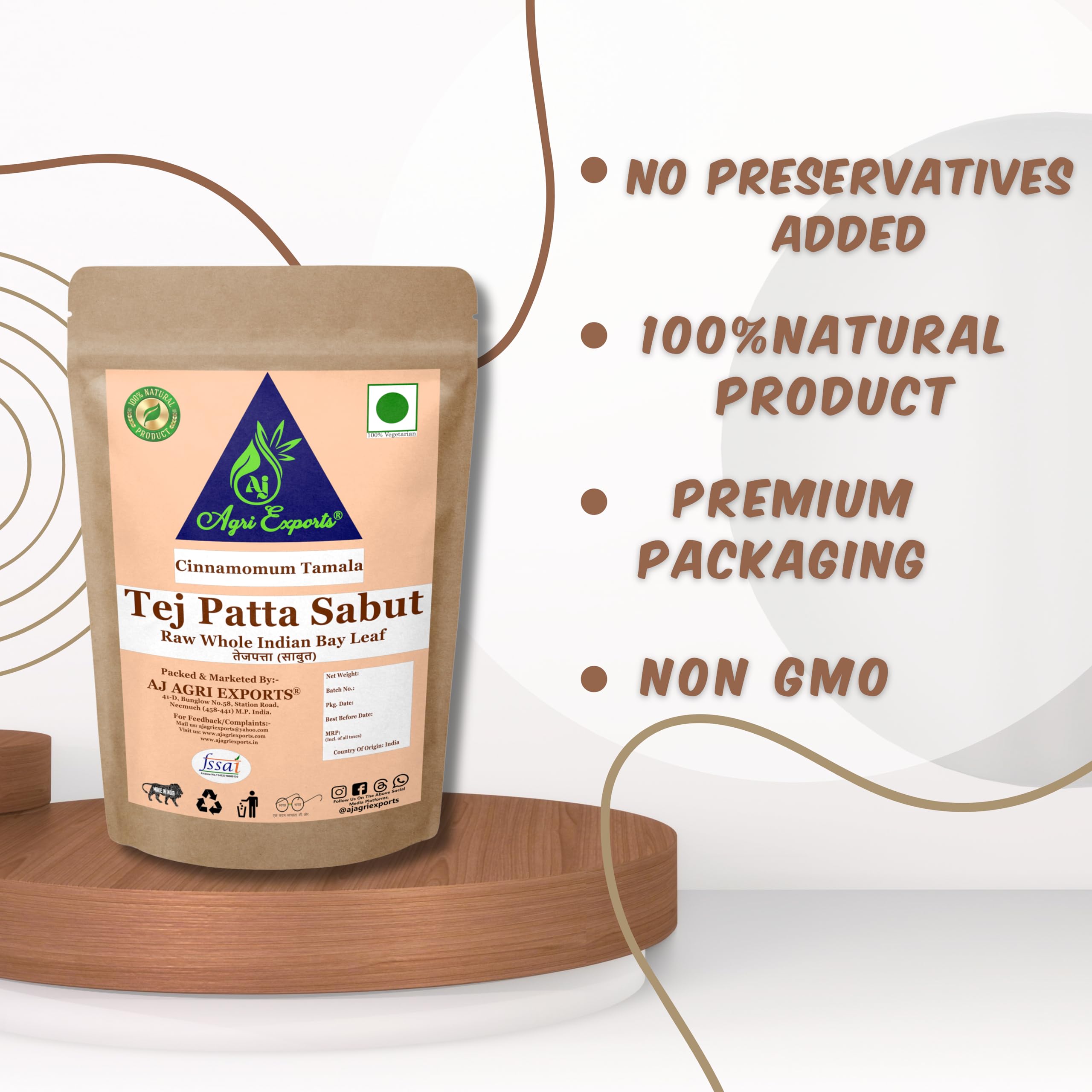 AJ AGRI EXPORTS Bay Leaf - Dried Bay Leaves with a Fragrant Herbal Aroma for Stews Soups and Rice Dishes | Non-GMO (50 Gram) (Pack of 1)