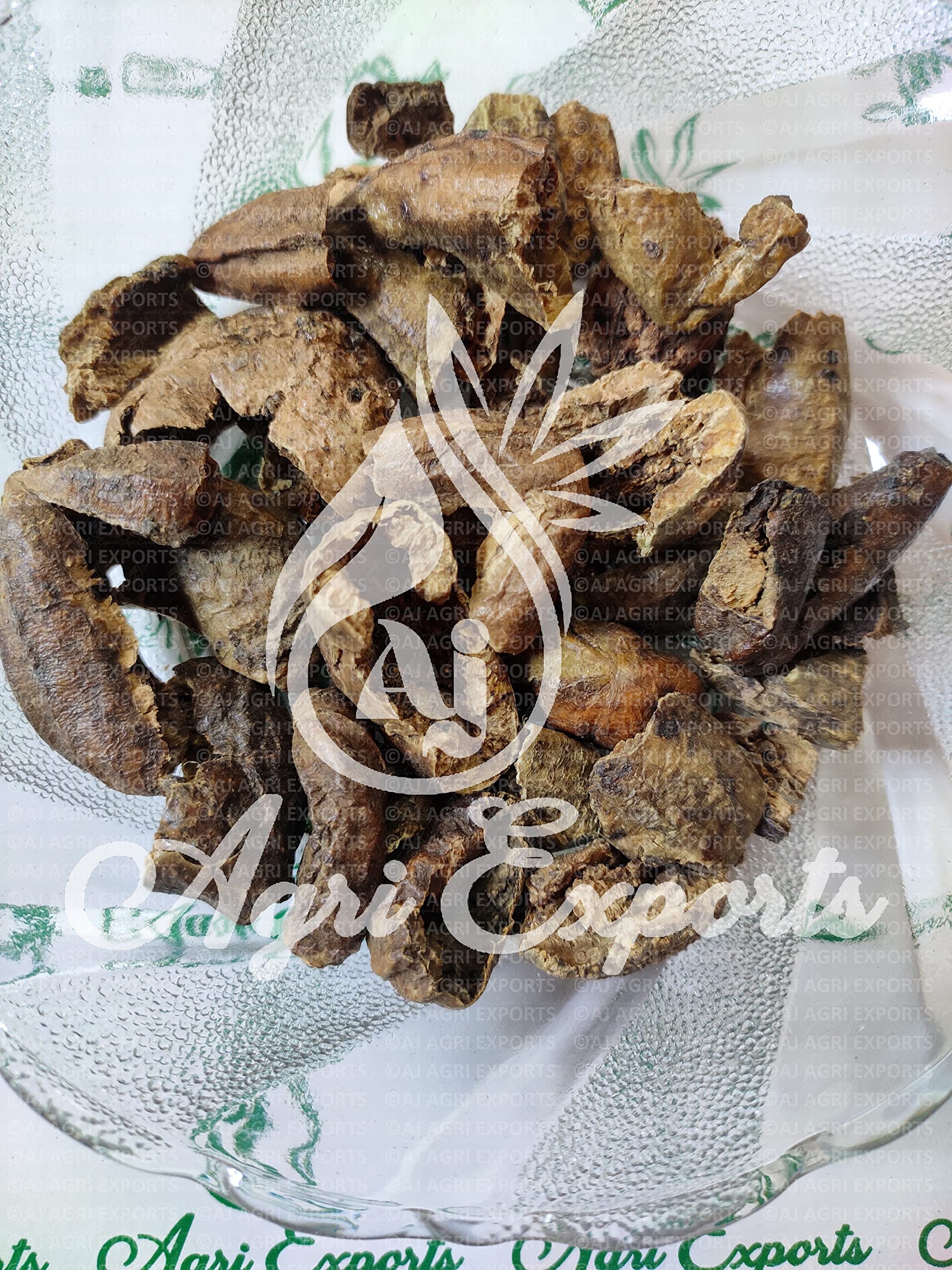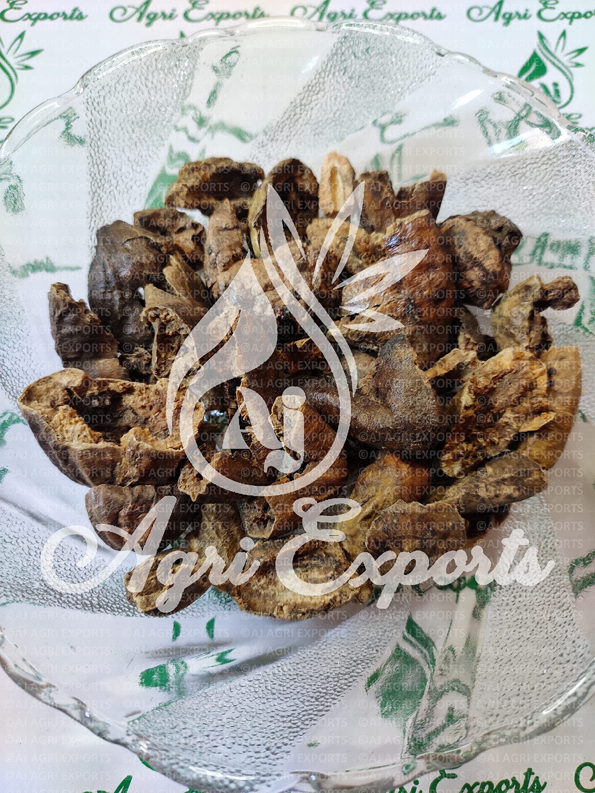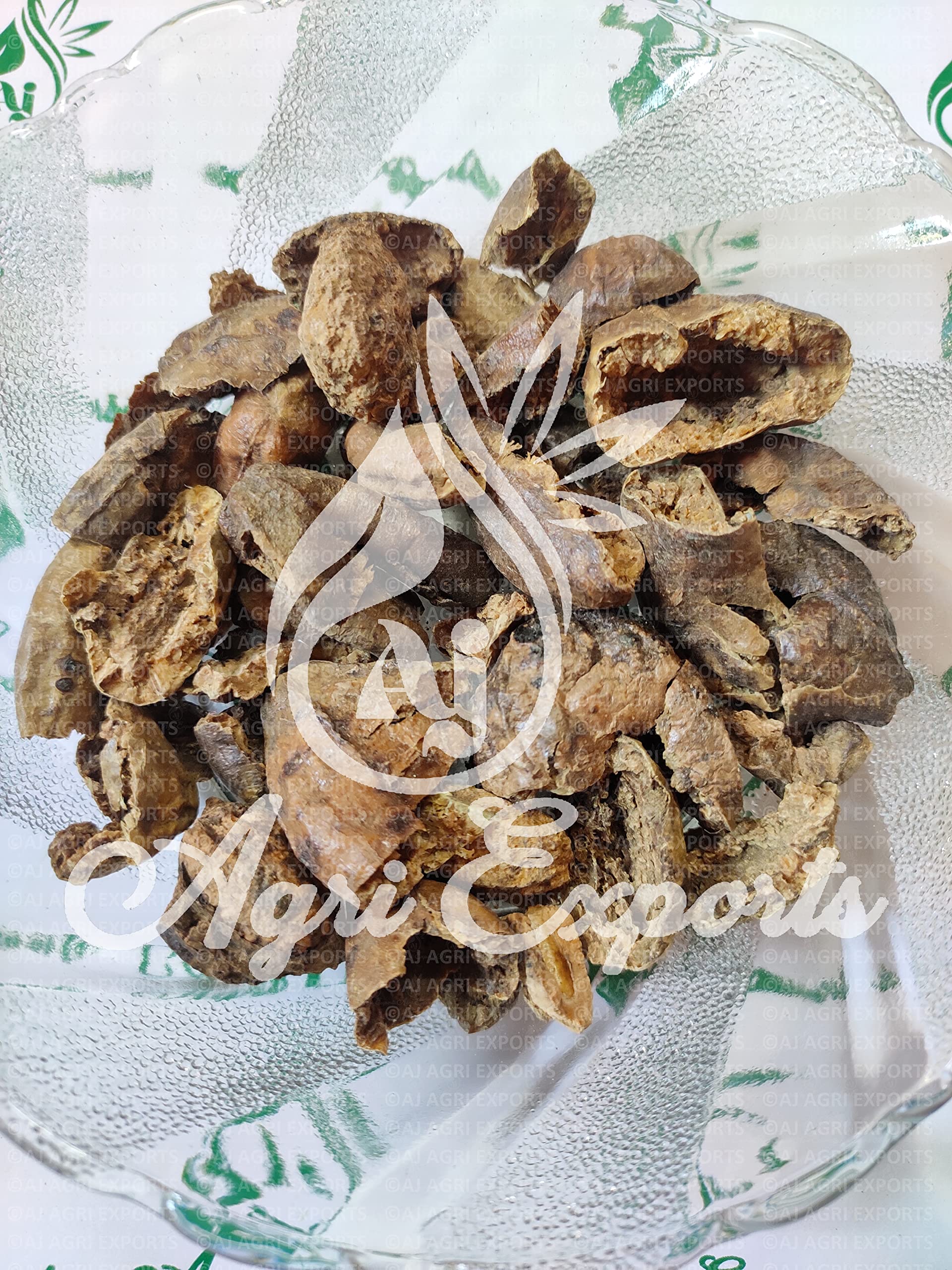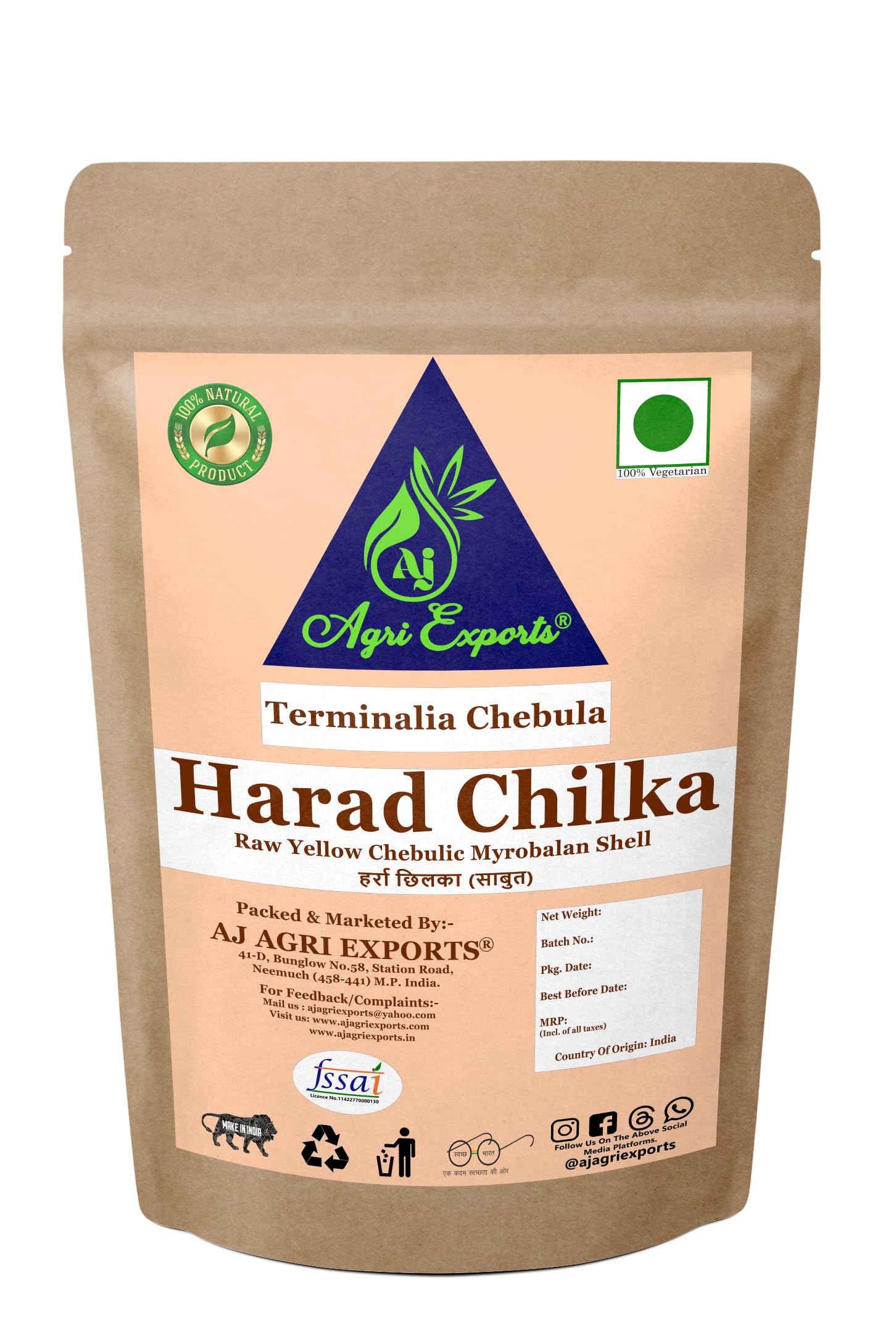 AJ AGRI EXPORTS Harad Chilka also known as Badi Harad Chilka Harad Pili Chilka Haritaki or Yellow Chebulic Myrobalan Shell Without Seeds is a natural remedy derived from the Terminalia Chebula plant. This ayurvedic medicine is highly effective in treating gastrointestinal issues like indigestion constipation and acidity. Harad Chilka promotes digestive health boosts immunity and aids in weight management. It is also renowned for its skin-enhancing properties helping to reduce acne promote a clear complexion and combat skin ageing by protecting against free radicals. Additionally Harad Chilka is believed to improve brain health making it a versatile and beneficial natural supplement. With its numerous therapeutic benefits this product is a valuable addition to one's wellness routine.