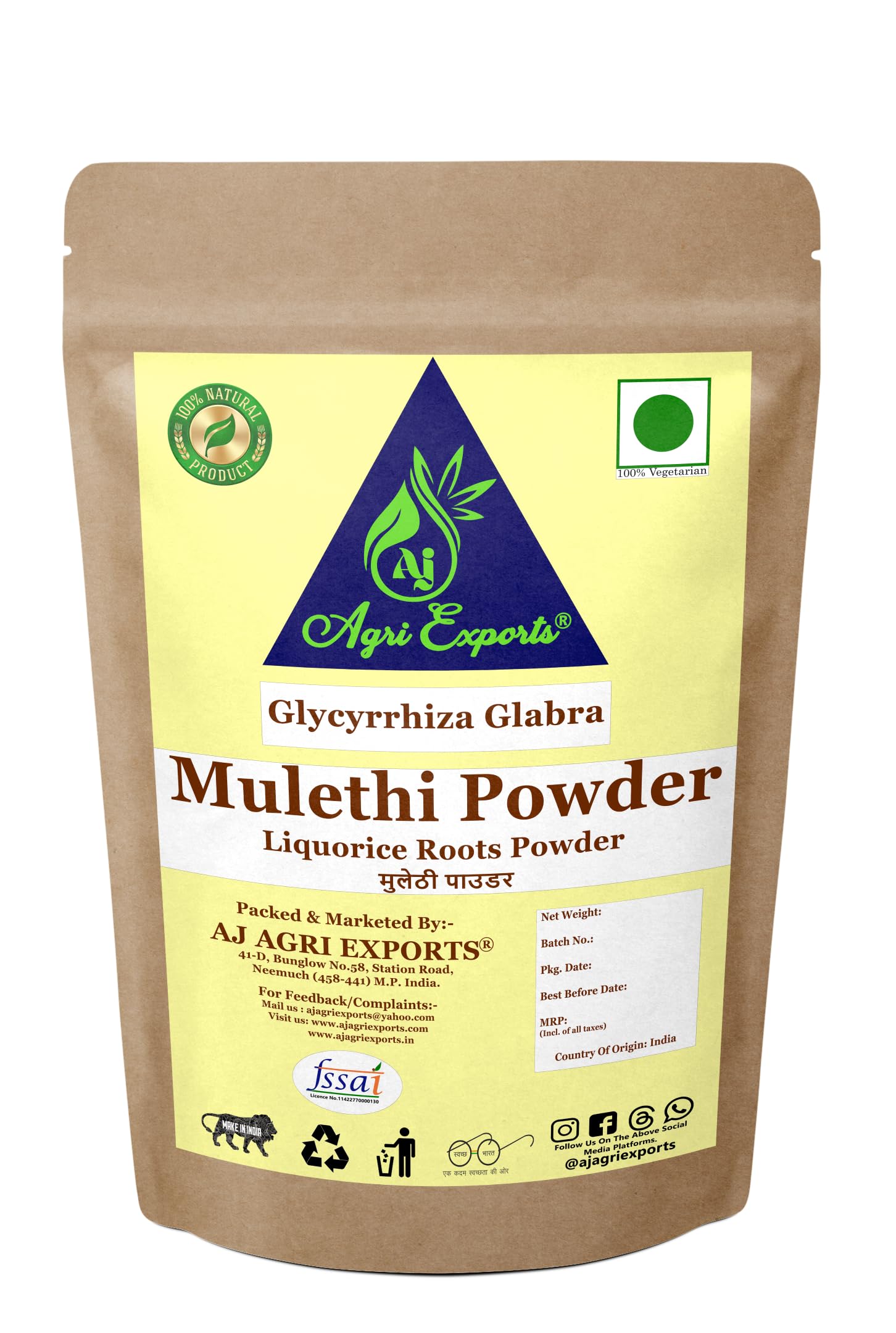 AJ AGRI EXPORTS Liquorice Mulethi Root Powder also known as Yashtimadhu Powder is a versatile natural ingredient with numerous benefits for health skin and hair care. This edible powder is derived from the Glycyrrhiza glabra plant and is free from preservatives. Mulethi Powder rich in natural pigmentation can be used as a face pack for glowing skin. It nourishes hair leaving it soft and lustrous. Incorporate this multipurpose Atimadhuram Podi/Athimadhura Hittu into your beauty regimen for a natural glow. Suitable for all skin types this licorice powder is a must-have for holistic well-being. Explore its goodness today!