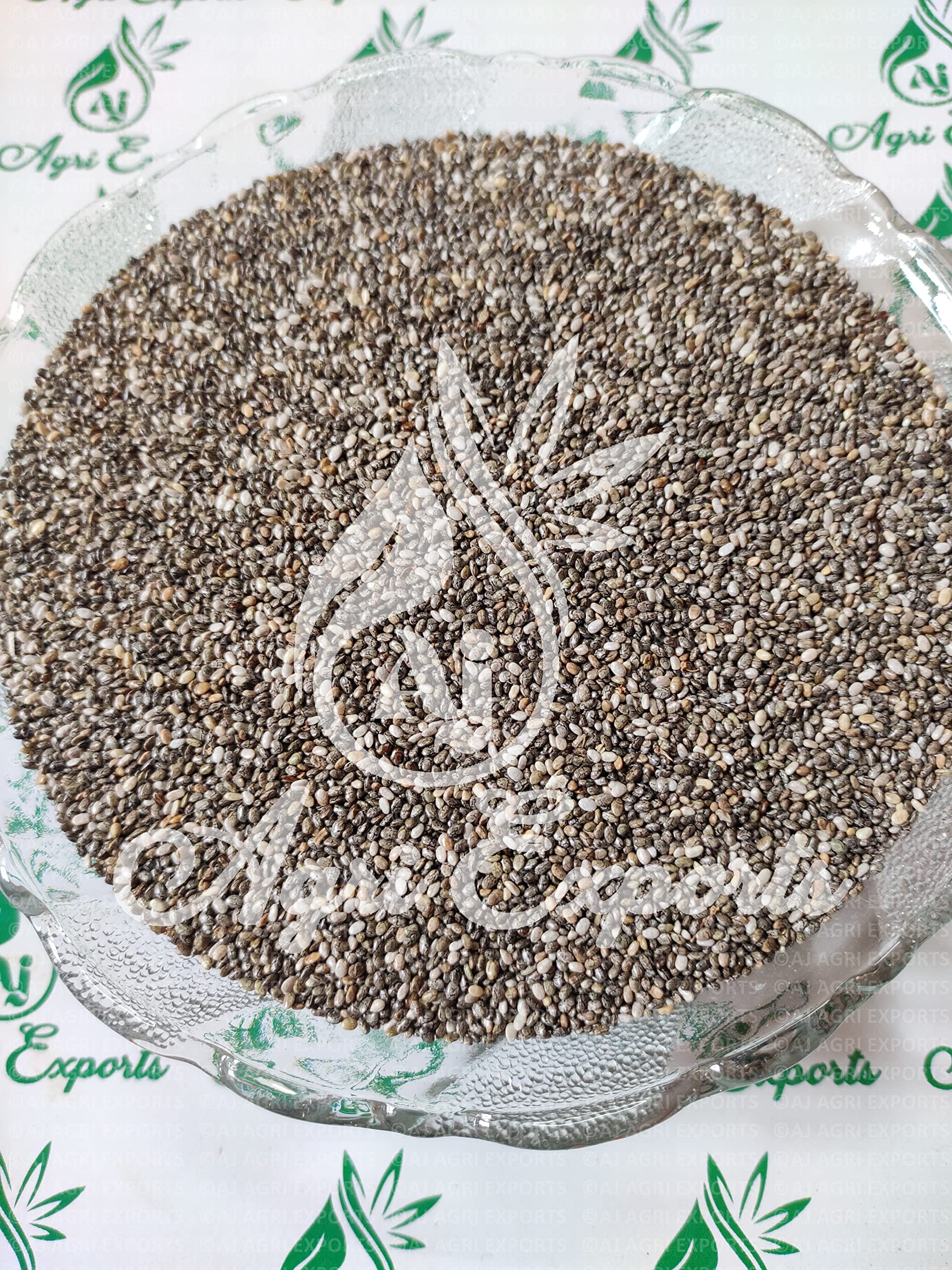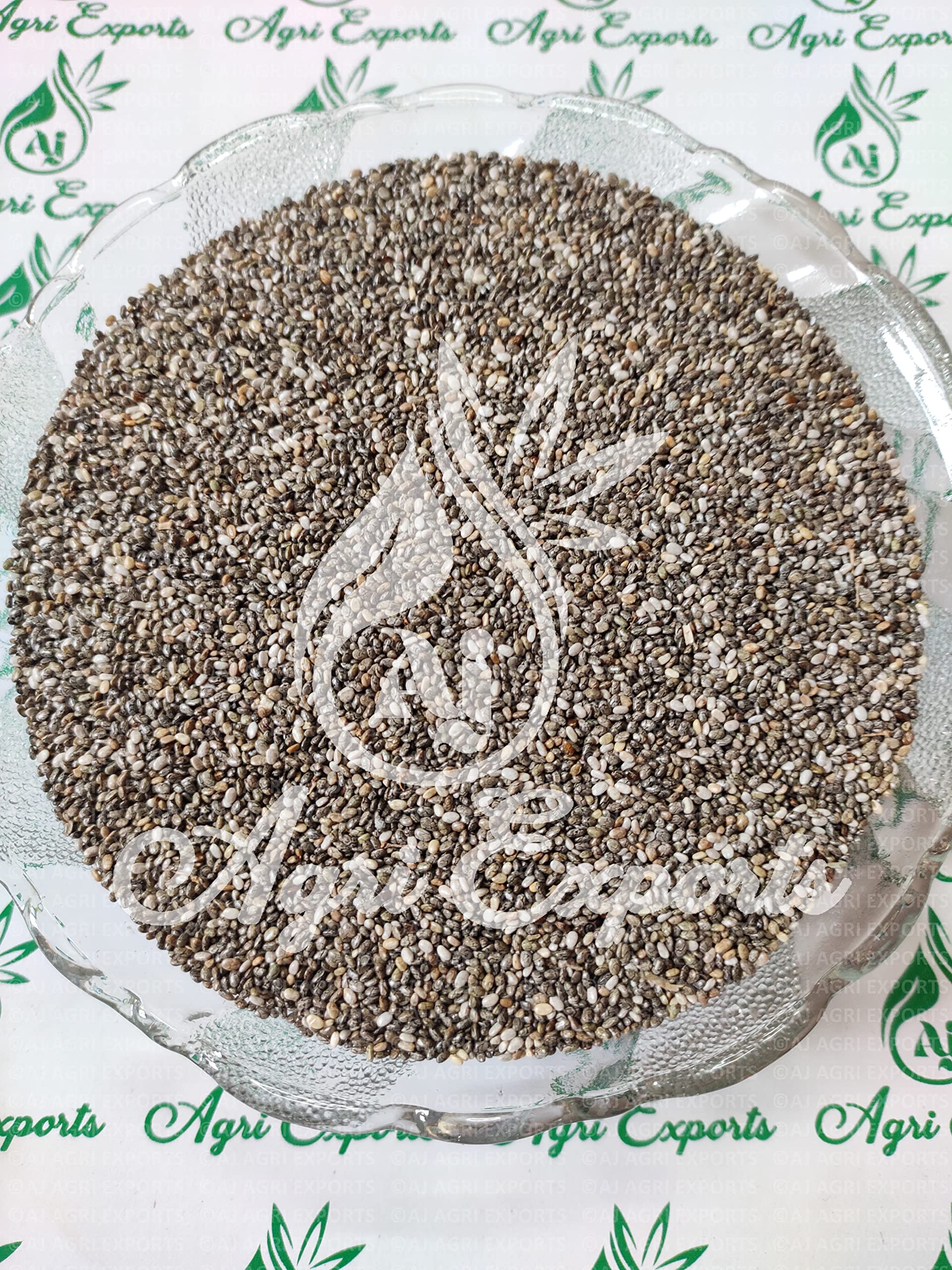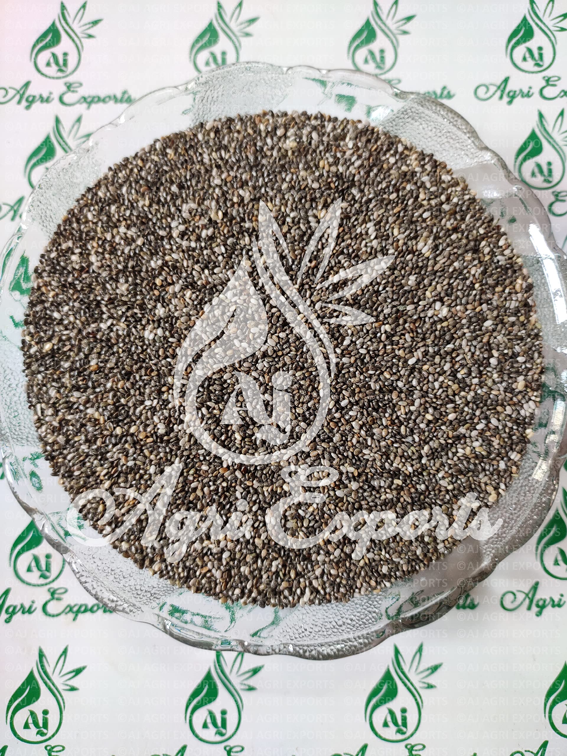 AJ AGRI EXPORTS Raw Chia Seeds also known as Salvia Hispanica Seeds are a powerhouse of nutrition and offer various health benefits. These tiny black seeds are an excellent source of fibre protein and omega-3 fatty acids aiding digestion blood sugar regulation heart health energy levels and metabolism. Chia seeds have been used in Ayurvedic practices for centuries and are known to boost immunity. With their versatility in cooking and baking these nutrient-dense seeds are a convenient addition to your diet for overall well-being. Enjoy the goodness of raw chia seeds from AJ AGRI EXPORTS and experience their multitude of health advantages.