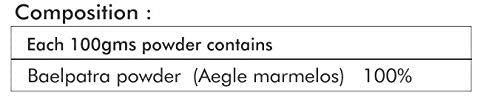 Ingredients: baelpatra powder. All our products are made from quality items. We recommend that you read labels warnings and directions of all products before use and not rely solely on the information. Care instruction keep away from the items or products which may cause damage to this product.