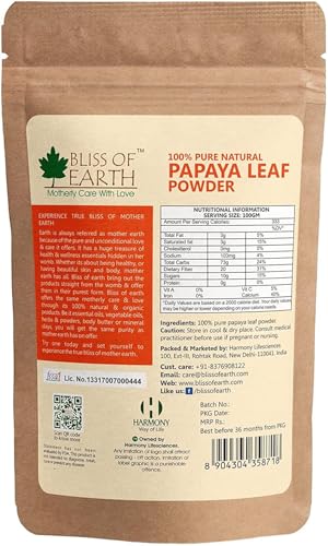 Bliss of Earth100% Pure Papaya Leaf Powder | 100GM | Carica Papaya | Helps Digestion & Increases Pla