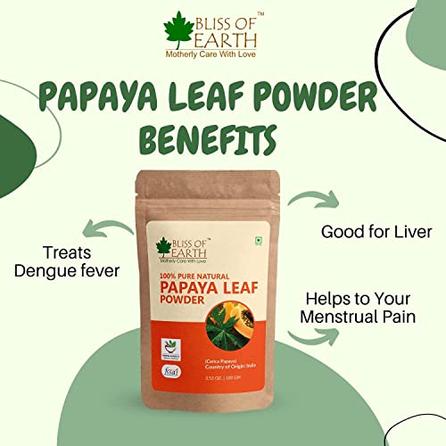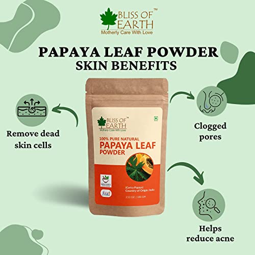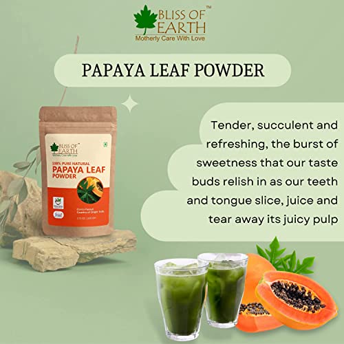 Bliss of Earth100% Pure Papaya Leaf Powder | 100GM | Carica Papaya | Helps Digestion & Increases Platelets | Anti-Oxidant | Skin Rejuvenation |