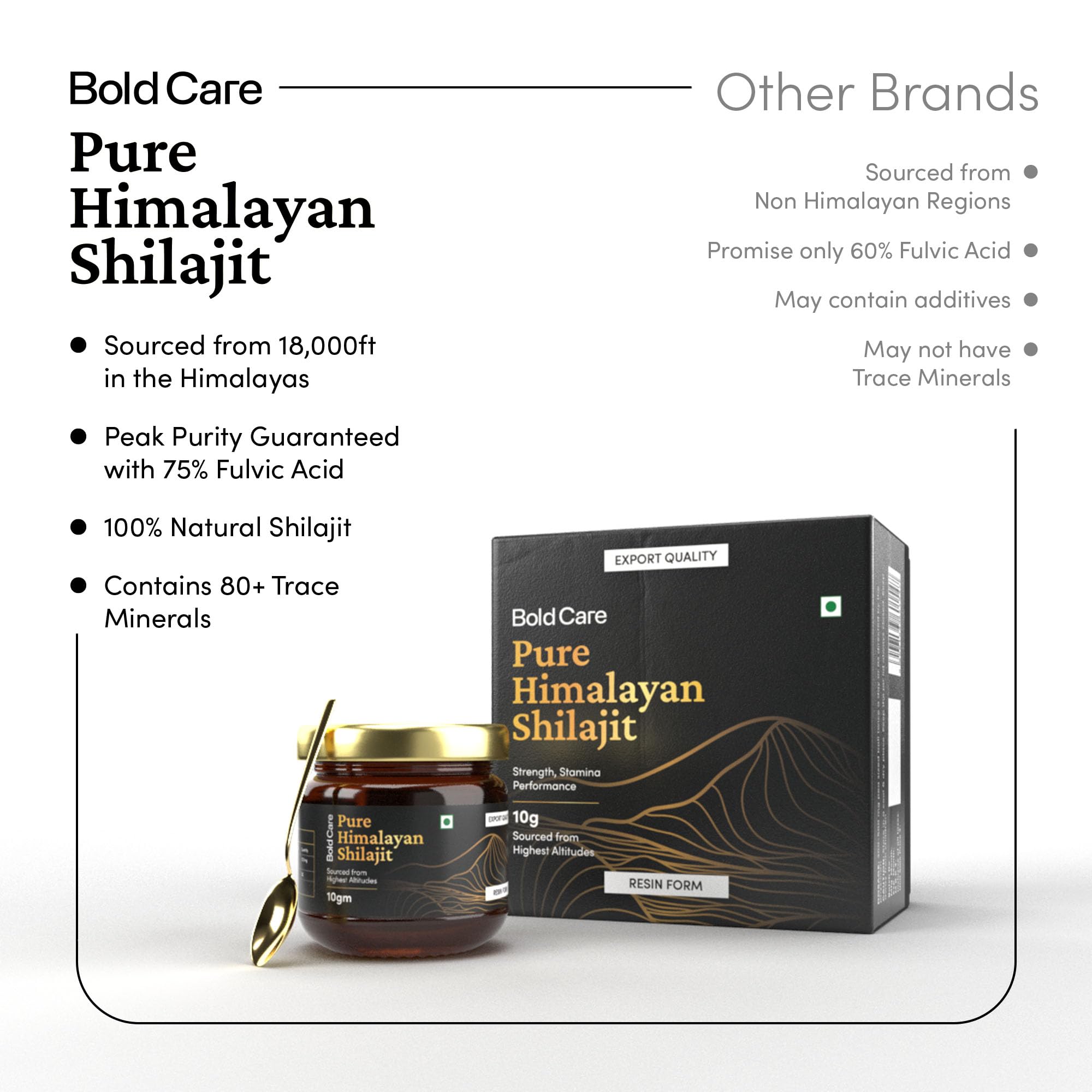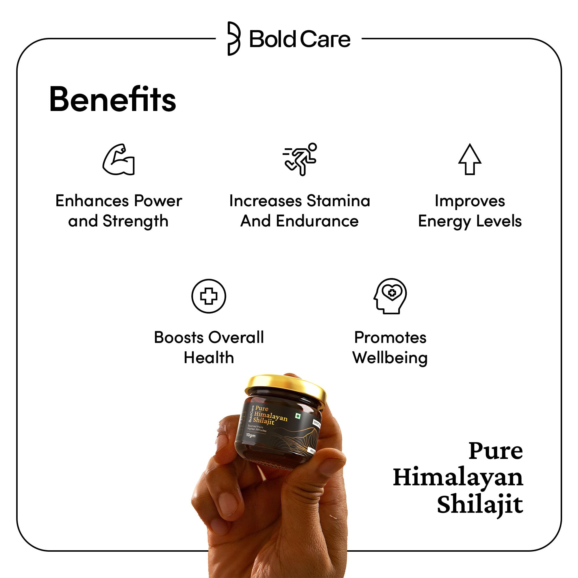 Bold Care Shilajit: Unlock the ancient power of the Himalayas with our 100% pure Ayurvedic Shilajit resin a true stamina booster sourced from the heart of the majestic mountains. Known as Shilajit or Shilajeet this original Himalayan resin is revered in A