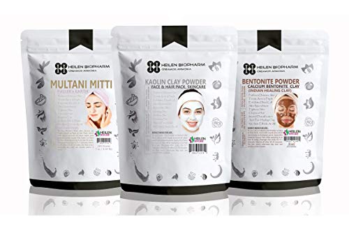 Size:400 gm EachFuller's earth provide glowing skin by getting rid of all the impurities from your skin and by unclogging your pores. It also helps regularize oil production for both oily and dry skin types this is what makes it an effective tool against acne. Multani mitti as a scrub helps get rid of blackheads and whiteheads fuller's earth is one of the most commonly used ingredient in home made soaps. Multani mitti helps in smoothening as well because of its properties multani mitti is also used as hair pack for stronger hair growth and hair cleansing. Whether it's poison ivy bug bites or red rashes kaolin clay can help. Kaolin clay is good for treating red blotchy painful and pus filled acne; You can treat acne effectively with kaolin clay by making a weekly acne treatment. Bentonite Powder dont have any side effects. Bentonite Powder can be used on all the skin types including sensitive skin. Bentonite Powder dont have age restrictions and gender restriction. Bentonite Powder can be used by Men Women Children and Old Aged.