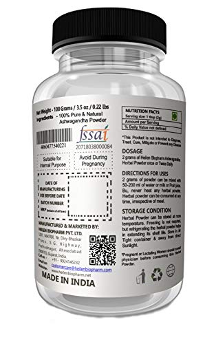 Heilen Biopharm Ashwagandha Powder (Indian Ginseng/Withania somnifera) 100 Gram