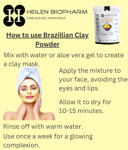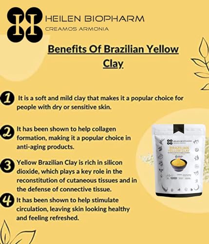 Buy Heilen Biopharm's Brazilian Yellow clay today and add it to daily routin without any fear to your face masks scrub and bath bombs. It doesn't contain any artificial dyes or pigments - the color comes from minerals found in different regions of Brazil. Along with creating a beautiful color it helps absorb excess oil from the skin.