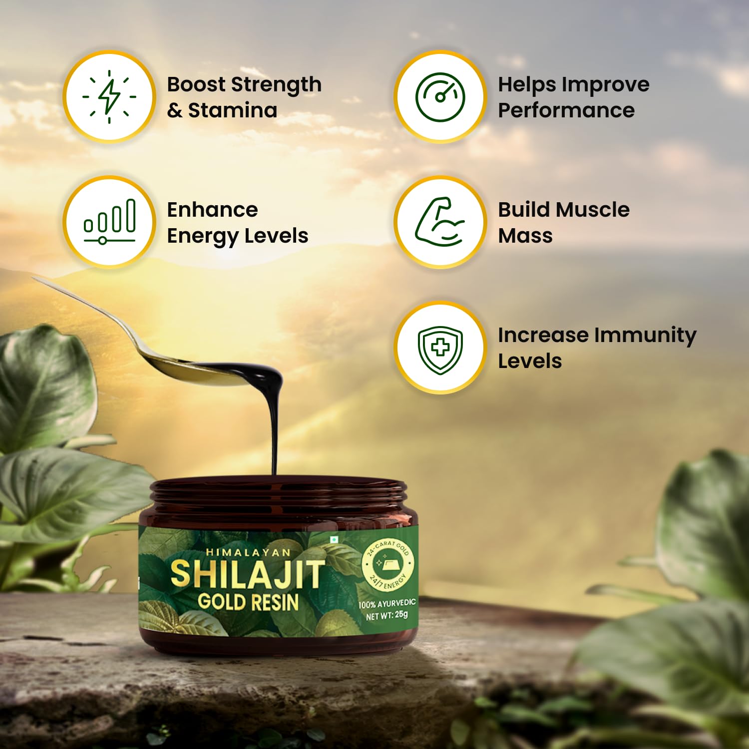 Himalayan Organics Shilajit Gold Resin - 25g | Contains 24 Carat Gold | 100% Ayurvedic | Pure and Natural Shilajeet | Helps to Boost Immunity Energy Strength Stamina and Overall Health - 25G