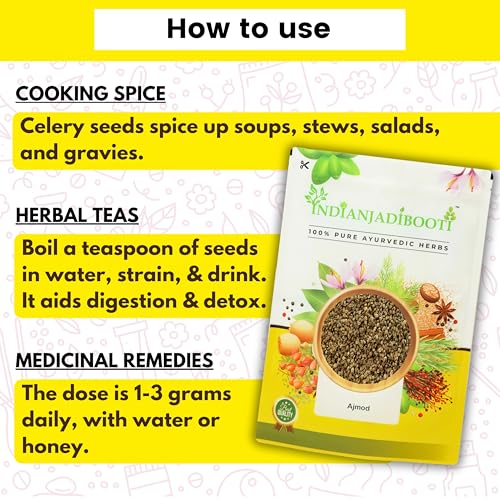 IndianJadiBooti Ajmod Apium Graveolens Celery Seeds, 250 Grams Pack