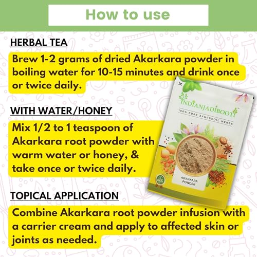 • Akarkara Root Powder helps in improving brain related function due to its memory-enhancing activity.