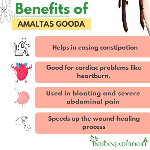 Amaltas is the pulp collected from the ripe fruit of cassia fistula plant & dried. Aragvadha is a Sanskrit word which means to eliminate the disease. Amaltas is used as a medicine in Ayurveda Siddha and unani system of medicine. In Ayurveda it is mainly indicated in Skin diseases and as a mild laxative in children. As per Ayurvedic science Amaltas is found useful to clear unwanted undigested material (AAM) and detoxify whole digestive tract. Ayurveda also mentions the use Amaltas (boiled in milk) to decrease excessive heat by Virechan (purgation) in Pitta vitiated cases. Many poly-herbal formulations are mentioned in Ayurveda which contain Aragvadh useful in Skin disorders intestinal infections high temperaturedigestion & constipation. Purging cassia Powder is also found useful to support healthy skin & as blood purifier. Regular intake of Aragvadh helps to boost immunity and fight back various harmful germs.