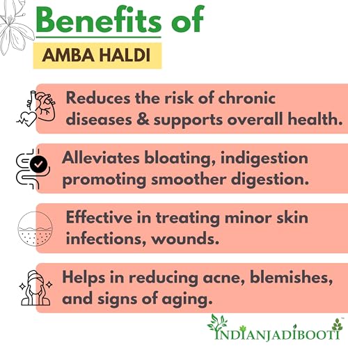 Ambehaldi powder may help to stimulate the production of bile a digestive juice needed in the digestion of fat. Amba haldi for face glow and may support healthy metabolism also. Amba haldi powder has Antioxidant anti-inflammatory & antibacterial properties for glowing skin & acne etc. Curcuma aromatica may help in natural toxin removal from the body.