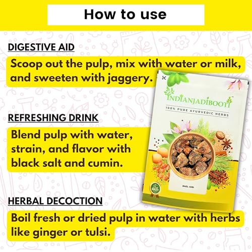 Bael or Aegle marmelos is a spiritual religious and medicinal plant. Wood Apple is a sweet aromatic and astringent in nature. Bel has many benefits and uses such as to cure tuberculosis hepatitis dysentery constipation peptic ulcer piles and many more useful in worm infestation and stomach related problems. It has many more usage in Ayurveda. It Contains many nutritious and medicinal values . It contains many vitamins as well as minerals. It is often consume during summer days because it helps us to feel refresh and maintain body temperature. It helps to treat constipation or digestion problem . It is said that it remove toxins from blood. Bael Fruit is authentic and genuine Ayurvedic Herb in its original form. Evertything Natural -The way mother nature intended our foods to be. Non GMO No Trans-fats cooking oils No chemicals preservatives Colors flavours Nothing artificial added . This Product comes in IndianJadiBooti Packaging. We do not compromise on the quality. We Provide Fresh Pure Clean and Sorted Herbs.