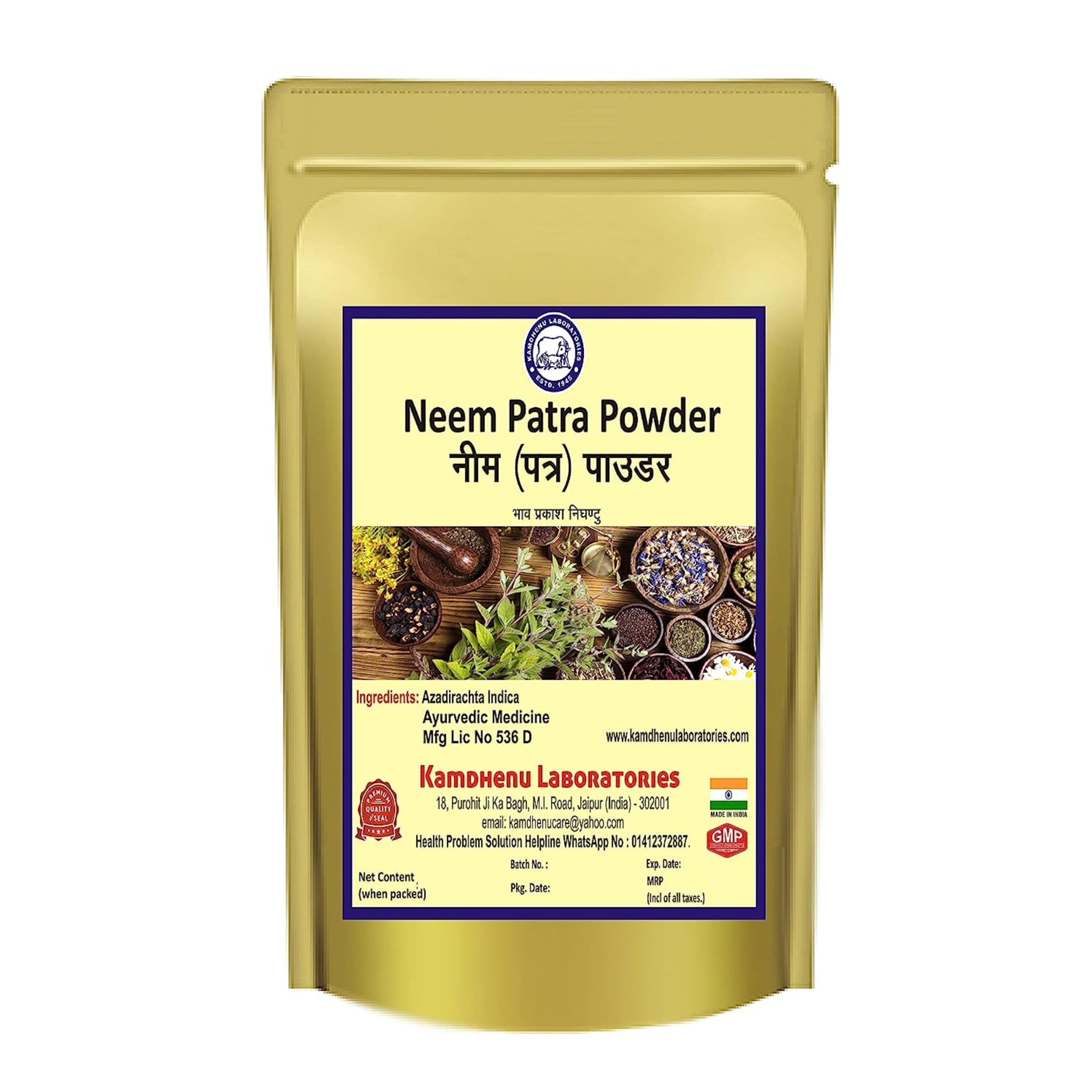 Kamdhenu Neem Leaves Powder 100 grams | Azadirachta Indica | Neem Patra powder for clear skin, face, hair, nutrition