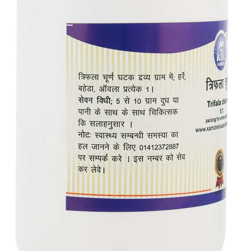 Pure And Potent Kamdhenu Triphala Churan - Ayurvedic Herbal Supplement With Amla, Haritaki, Bibhitaki Digestion & Detoxification Natural Cleanser Gut Health - Boosts Energy 250 Gram Pack Of 1