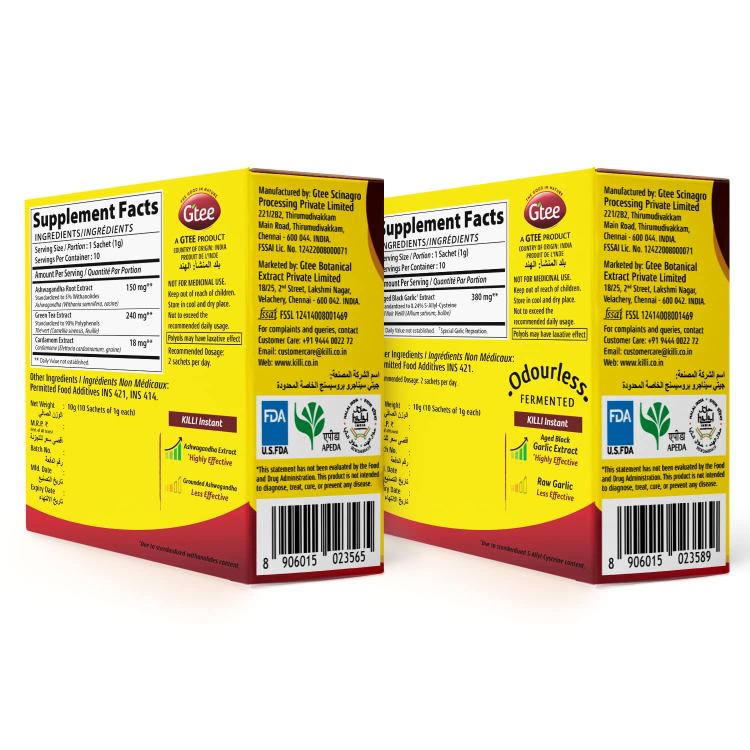 KILLI Ashwagandha | Aged Black Garlic Instant Ayurvedic Extract 2 Packs of 10 Sachets
