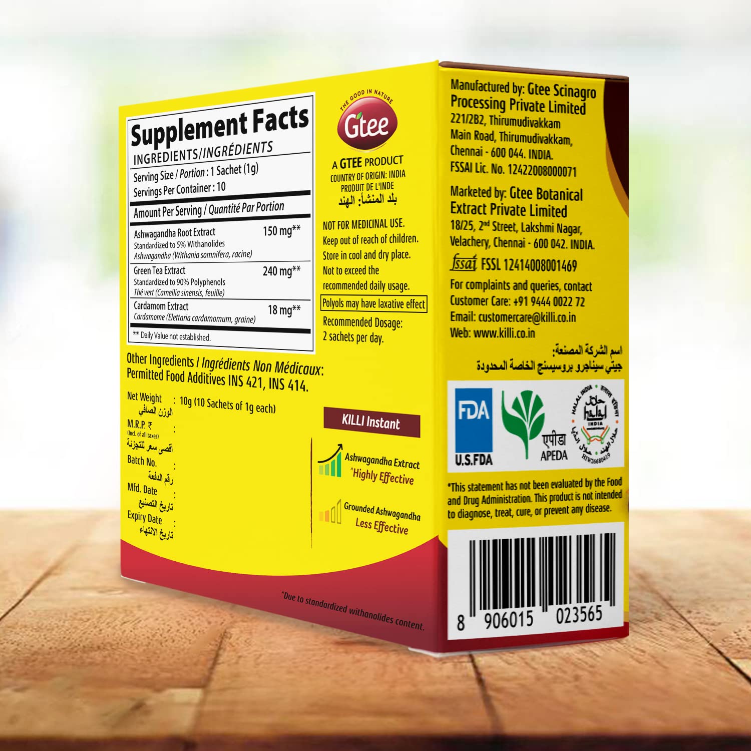 USFDA CERTIFIED - KILLI Herbs are certified by the United States Food and Drug Administration FSSAI Nutraceuticals Food Safety and Standards Authority of India HALAL India. All the herbs are grown by our farmers naturally with no added chemical fertilizer