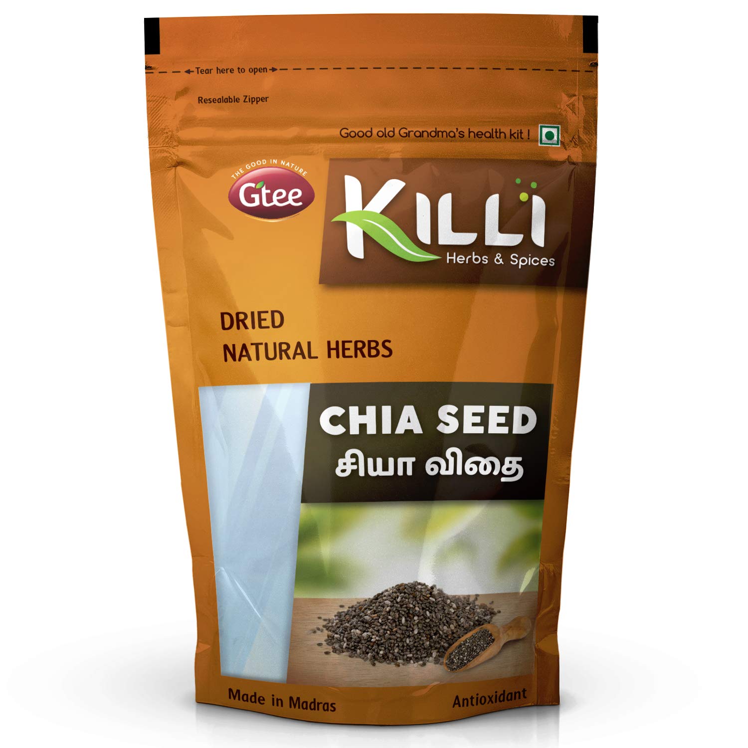KILLI CHIA SEEDHEALTH BENEFITSChia seed is a good source of Omega-3 fatty acids fiber antioxidants iron and calcium. It supports a healthy complexion and increases energy. Adequate fiber helps avoid constipation.HOW TO MAKESoak one teaspoon (4-5g) of Killi Chia seed in water overnight and can be consumed mixing with milk or fresh fruit juice.KILLI HERBS & SPICESKILLI having its special care and scientific approach in every stop of processing of herbs to retain the active principle taste and aroma explores the value of traditional herbs with uncompromising quality and taste to customers. We believe that the traditional wisdom is the wealth of our Nation. KILLI's unique herbal combinations offers its customers the best healthy solutions. KILLI is a Registered Trademark of Gtee