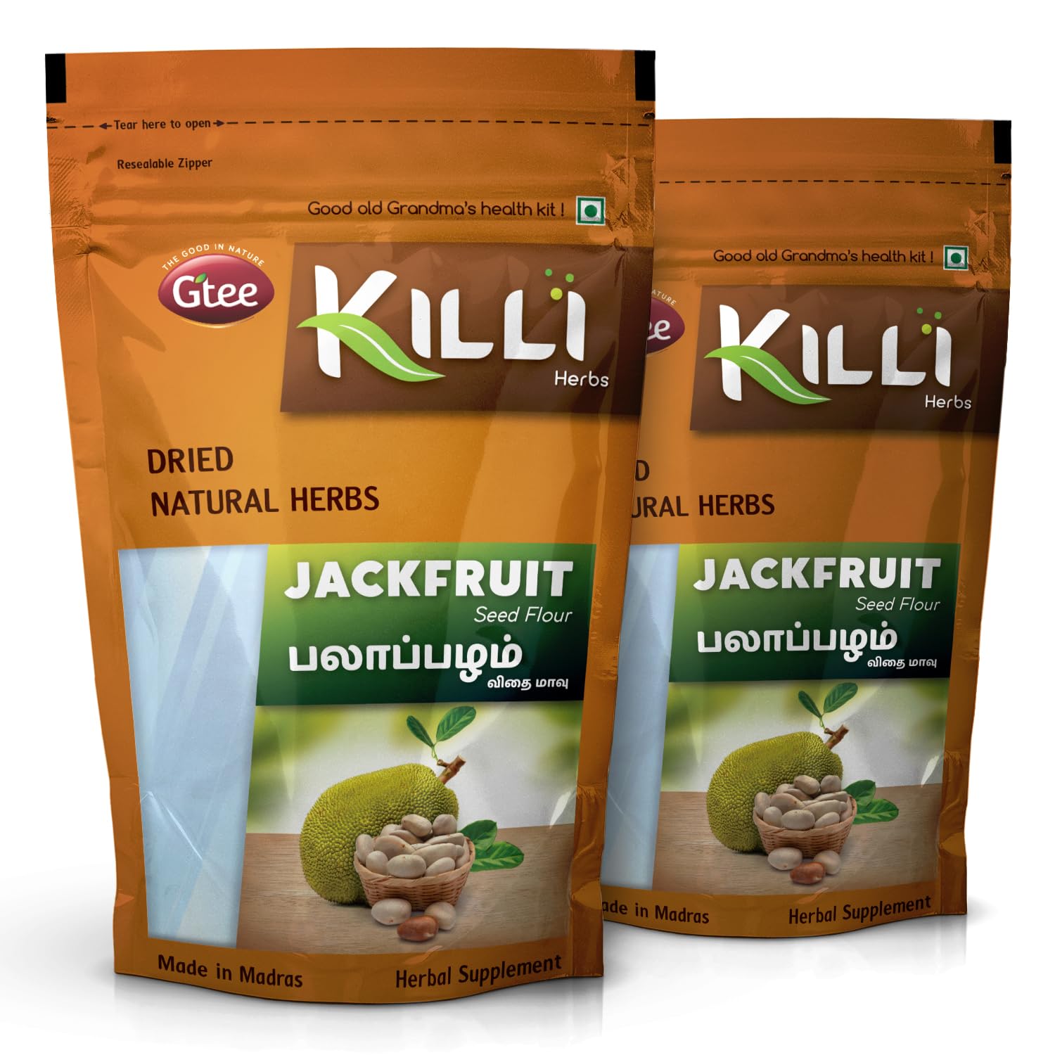KILLI JACKFRUIT SEED FLOURHEALTH BENEFITSJackfruit seed is a powerhouse of nutrients rich in protein fiber and essential minerals. Regular consumption aids digestion supports blood sugar control boosts immunity and promotes overall wellness.HOW TO MAKEMix 3 teaspoons (12-15g) of Killi Jackfruit Seed flour with with whole wheat flour to make rotis chapathis parathas or with rice flour to make idli and dosa.KILLI HERBS & SPICESKILLI having its special care and scientific approach in every stop of processing of herbs to retain the active principle taste and aroma explores the value of traditional herbs with uncompromising quality and taste to customers. We believe that the traditional wisdom is the wealth of our Nation. KILLI's unique herbal combinations offers its customers the best healthy solutions. KILLI is a Registered Trademark of Gtee