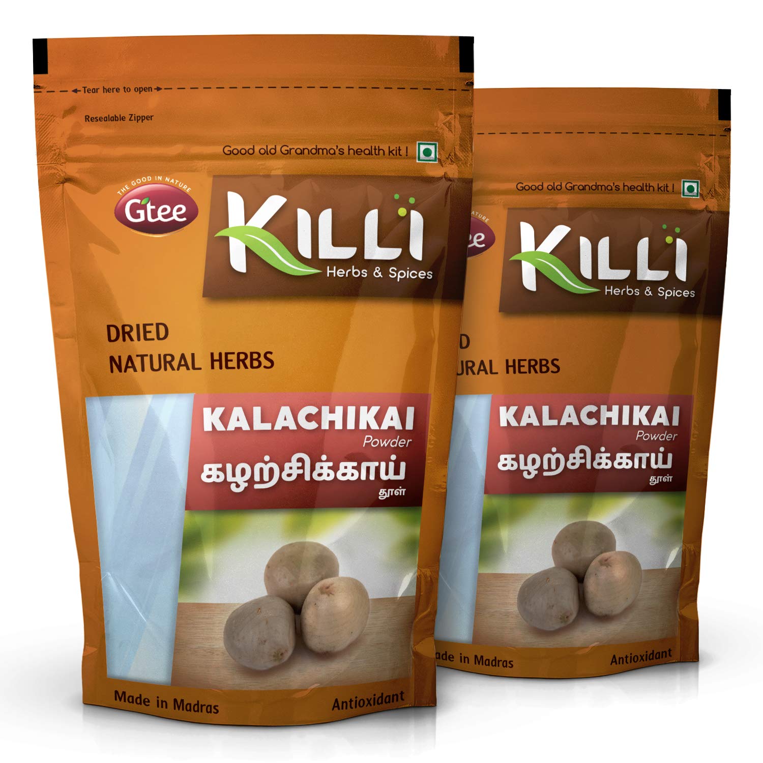 KILLI KALACHIKAI POWDERHEALTH BENEFITSKalachikai is aslo known as Fevernut and Bonduc nut and is repeatedly mentioned in the ancient Indian scriptures. It is grown in India and is generally consumed by women.HOW TO MAKEMix half a teaspoon (2-3g) of Killi Kalachikai powder with 150ml of warm water add a pinch of pepper and drink daily after food.KILLI HERBS & SPICESKILLI having its special care and scientific approach in every stop of processing of herbs to retain the active principle taste and aroma explores the value of traditional herbs with uncompromising quality and taste to customers. We believe that the traditional wisdom is the wealth of our Nation. KILLI's unique herbal combinations offers its customers the best healthy solutions. KILLI is a Registered Trademark of Gtee