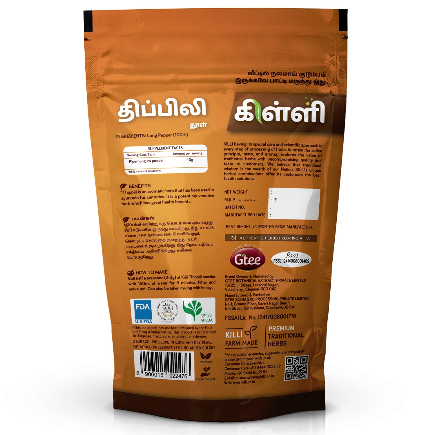 KILLI Long Pepper | Thippili | Piper longum | Pippali Powder 100g
