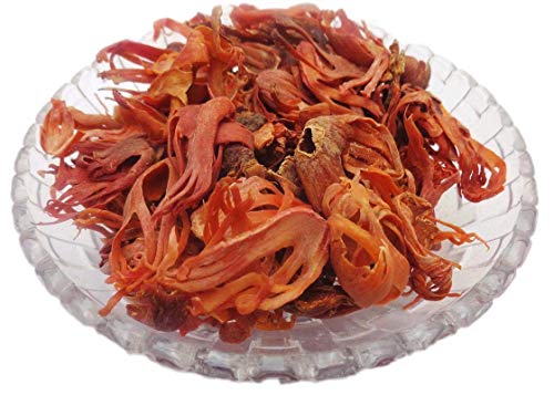 Javitri is a crimson red colored thread like material that envelops the nutmeg. It is spicy in taste somewhat like a combination of pepper and cinnamon with a strong aroma. ... Javitri is the net like extra seed covering that covers the Nutmeg's seed coat. It is native to the Bandra islands of Indonesia.