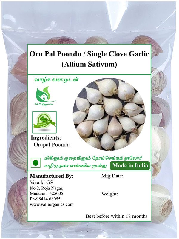 Valli Organics Oru Pal Poondu | Single Clove Garlic | Ek Kal Lehsun 100gm