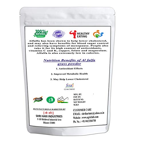 Health BenefitsIt naturally helps to help healthy digestion.In ancient India Ayurvedic texts prescribe the use of Alfalfa seeds and sprouts for improving blood cell production and its leaves and stem as aood source of protein and minerals.Alfalfarass is loaded with vitamins namely K E C D B and A.Boosts immune system.UsageThe most common way to ingest alfalfa is to add alfalfa powder to a salad.