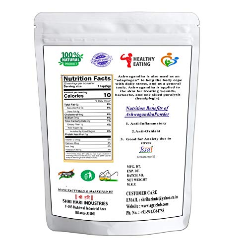 Agri Club Agri Essential Natural Ashwagandha Powder (Withania Somnifera) - Ayurvedic Herbal Supplement That Promotes Vitality & Strength - Support for Stress-Free Living (1 Kg)