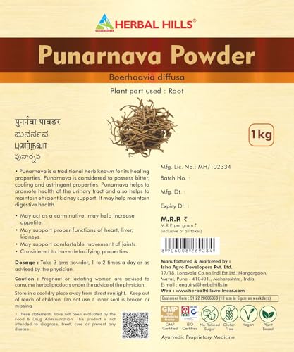 Herbal hills is a leading manufacturer supplier & wholesaler in india of ayurvedic product punarnava powder. It is also called as boerhavia diffusa & is synergistcally processed with highly advanced technology. Our products are made out of best quality and authentic ayurvedic herbs available in india which are specially selected and manually graded to give best results. Herbalhills punarnava powder can be used for ayurvedic purpose. Herbalhills punarnava powder may support kidney health rejuvenator. Main herbs & properties punarnava powder is made from the root of boerhavia diffusa. It has diuretic antioxidant spasmolytic antibacterial analgesic immunity booster and anti-ageing properites. The name punarnava itself suggests rejuvenation.