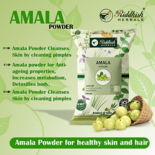 Riddhish HERBALS Organic Amla Powder (Gooseberry Powder) for healthy skin and hair | 100% Natural Powder | Hydrates & Nourishes Hair & Skin | Pack of 7 | Each of 100gm