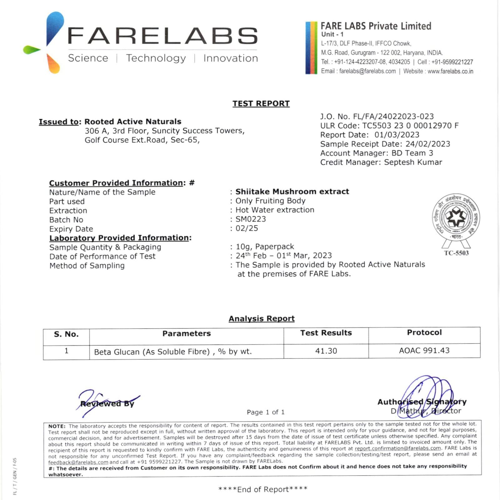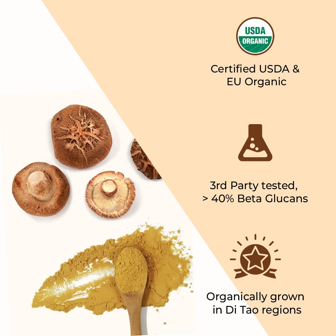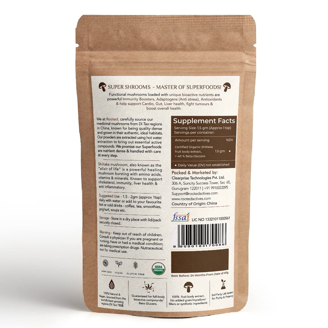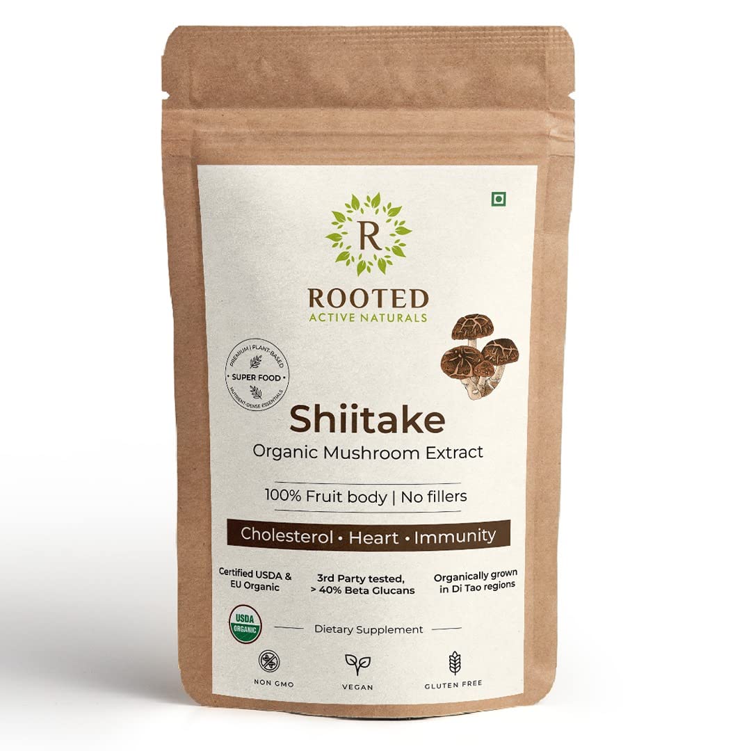 Rooted Actives Shiitake Mushroom Powder (45 Gm) | Cholesterol Heart Health Immunity | Usda Organic | 40% Beta Glucans