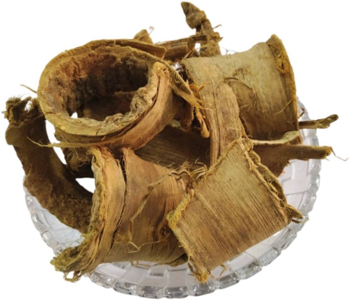 Bel chhal / Bael Bark is pale brown or grayish, smooth or finely fissured and flaking, armed with long straight spines, 1.22.5 cm singly or in pairs, often with slimy sap oozing out from cut parts. The gum is also described as a clear, gummy sap, resembling gum arabic, which exudes from wounded branches and hangs down in long strands, becoming gradually solid. It is sweet at first taste and then irritating to the throa