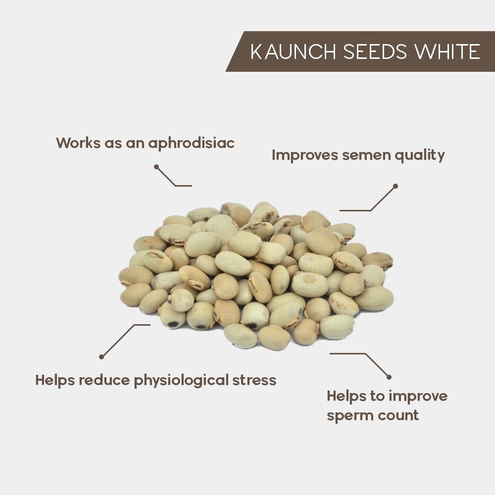 SEVENGRAINS KAUNCH BEEJ SAFED::KAUNCH SEEDS WHITE::KONCH::MUCUNA PRURIENS WHITE 100g