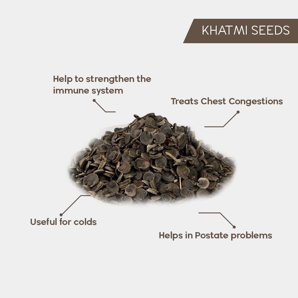 Khatmi Seeds, commonly known as Marsh Mallow is one of the important medicinal plant used in Unani medicine. Khatmi is a perennial plant with light brown colored, long and thick root, ovate-cordate, slightly toothed leaves and pale pink or pale purple colored flowers. Khatmi Seeds is a perennial, uniformly downy herb occurring in Kashmir region.