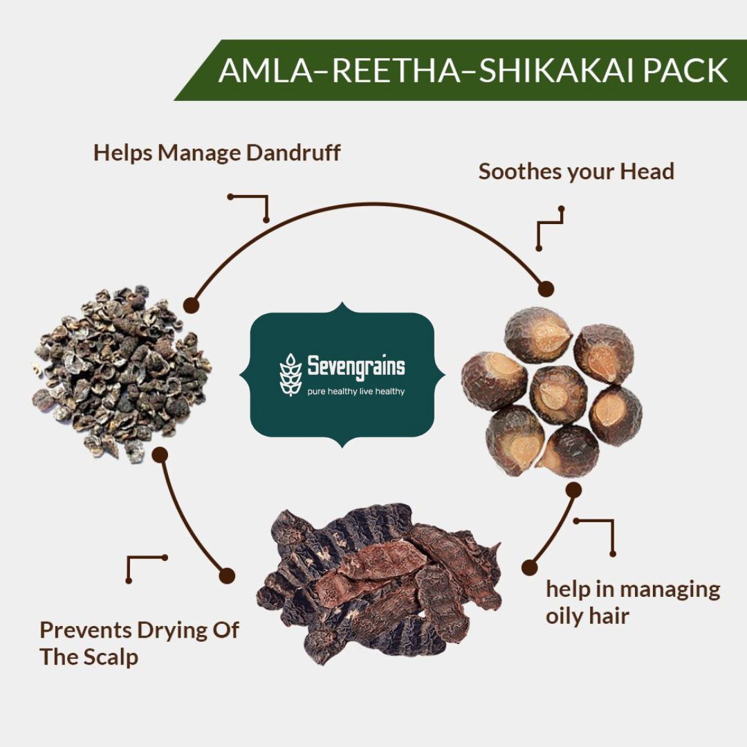 SEVENGRAINS Reetha Amla Shikakai (RAW Form)::Natural organic Herbs::(150+150+150) 450g