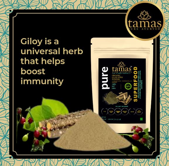 Tamas Pure Ayurveda Giloy Stem (Tinospora Cordifolia) Organic Powder (100gm): 100% Natural and Certified USDA Organic