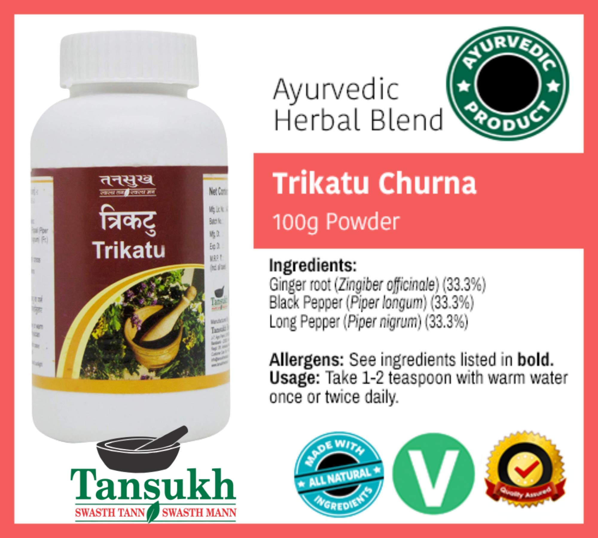 Tansukh Trikatu Churna powder/Thirikadugam choornam Combination of three peppers - Pack of 1 (100 Gms)
