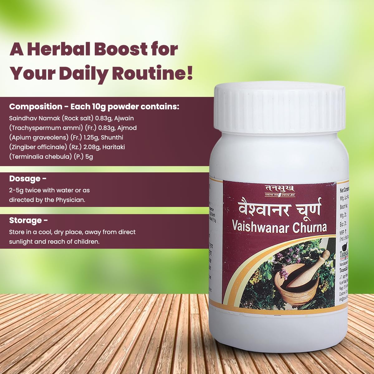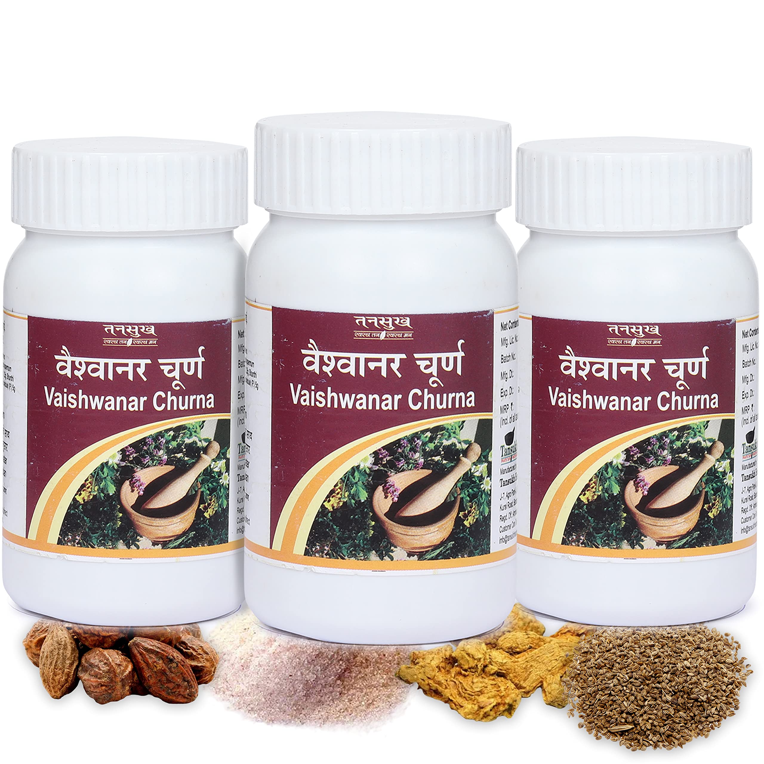 Tansukh Vaishwanar Churna - Pack of 3 60gram Each | Choornam Ayurvedic Powder | Pack of 3 = 60g X 3 = 180 Gram | Container Type - Bottle