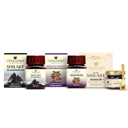 Upakarma Ayurveda Combo of Pure Shilajit Resin 20, Ashwagandha 90 Capsules, and Pure Shilajit 90 Capsules