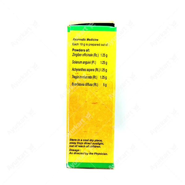 Vaidyaratnam Ardhavilwam Kashaya Choornam, For Swelling and Pain, 100% Herbal, 100gmVaidyaratnam Ardhavilwam Kashaya Choornam is an Ayurvedic formulation. This herbal decoction may be useful in reducing swelling and pain.Form: PowderIdeal for: AdultsType: Herbal supplementGender: Both men and womenPackage content: 100gm in an airtight containerIngredientsVaidyaratnam Ardhavilwam Kashaya Choornam is an all-natural decoction. This herbal powder is made withGingerPunarnavaIndian baelGreen chirettaDesert fagoniaIndian nightshadePrickly chaff flowerBenefitsVaidyaratnam Ardhavilwam Kashaya Choornam may be useful in the following health issues.PainSwellingInflammatory conditionsFeaturesVaidyaratnam Oushadhasala was founded in 1941. This Ayurvedic institute is known for its premium quality herbal supplements. Vaidyaratnam is located at Ollur, Kerala and follows Kerala Ayurveda and Ashtavaidya tradition to manufacture its products. Vaidyaratnam Ardhavilwam Kashaya ChoornamIs easy to useIs 100% herbalIs made with the best quality ingredientsIs not known to have negative effects on the userComes with a long shelf life of 12 months from the date of manufactureDoseVaidyaratnam Ardhavilwam Kashaya Choornam should be consumed after consulting an Ayurvedic physician. Generally, the below steps are followed to have the decoction.Have the decoction after mealsTake 12-24mg of the powder per dayTake the supplement once or twice a dayMix equal amount of lukewarm water with the powder before consumptionTipsVaidyaratnam Ardhavilwam Kashaya Choornam stays fresh and usable for long if the below tips are followed.Store at a cool and dry placeWarningKeep away from childrenDo not expose to direct sunlightDo not exceed the reco