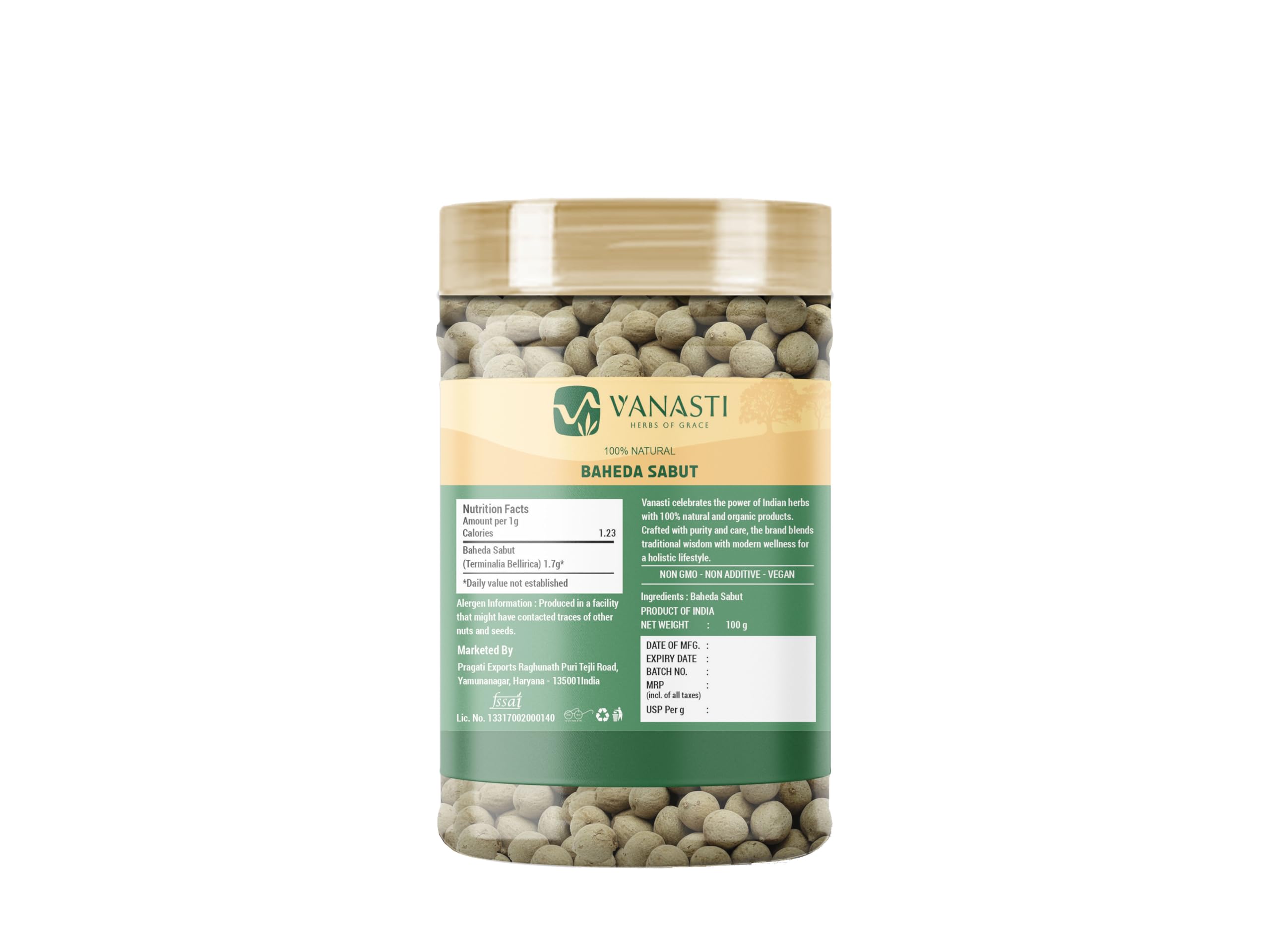 VANASTI Bahera | Baheda Sabut | Bibhitaki | Terminalia Bellirica | Bahera Whole | 100 gram