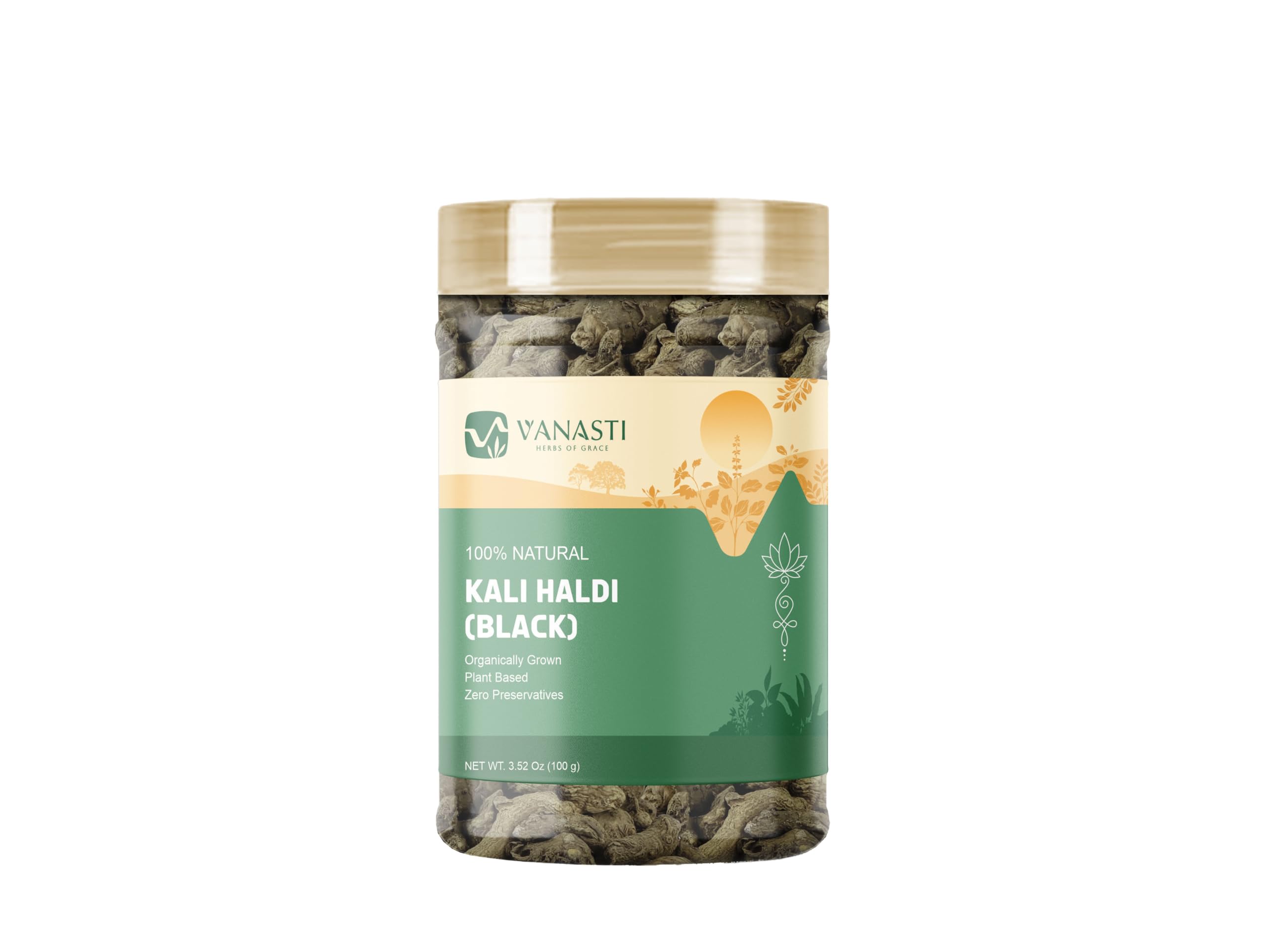 Kali Haldi (Black Turmeric, Curcuma caesia) is a rhizome with a dark bluish-black interior and an earthy, slightly bitter flavor. Native to India, it belongs to the ginger family. Kali Haldi contains natural plant compounds such as curcuminoids and essential oils. It is sometimes used as a spice or coloring agent in culinary preparations and is valued for its unique color and aroma.